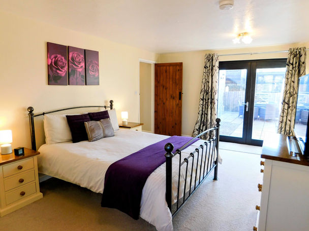 Master suite with kingsize bed, ensuite shower and french doors leading out to the patio.